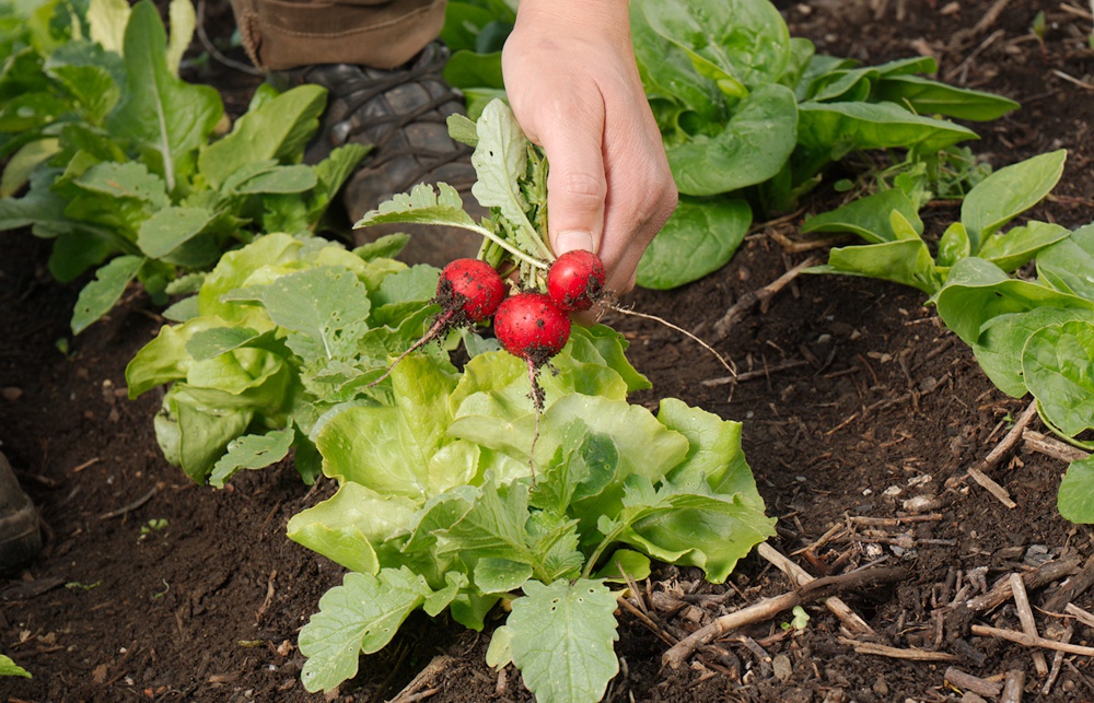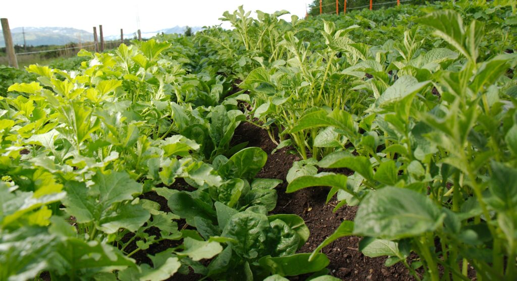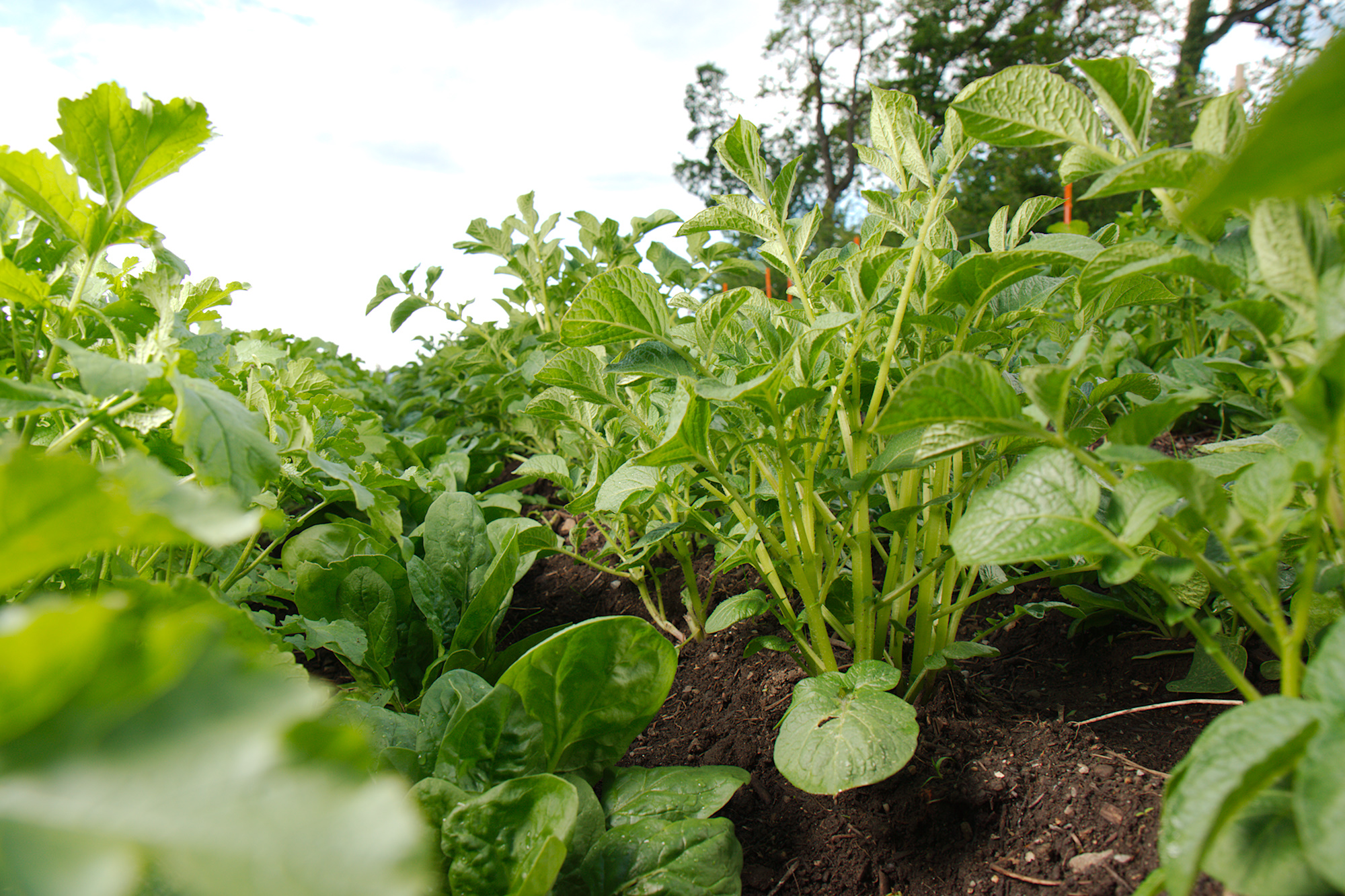 Der Boden in den Beeten wird mit einer regenerativen Flächenrotte vorbereitet und mit Nährhumus aus eigener Kompostierung angereichert. Die Pflanzengesundheit wird durch Kompostextrakt und Homöopathie gestärkt. Die Gemüsesetzlinge ziehen wir selber an und das Saatgut stammt aus Biobetrieben – wenn immer möglich verwenden wir sortenfestes Saatgut.